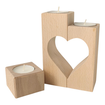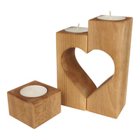 Zestaw drewnianych świeczników na stół z sercem, podstawki pod świece tealighty podgrzewacze z drewna naturalnego, dekoracja boho rustykalna SC09