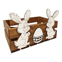 Elegancka Skrzynka Wielkanocna z Zajączkami i Jajkiem, Brązowa, 30x20x12 cm